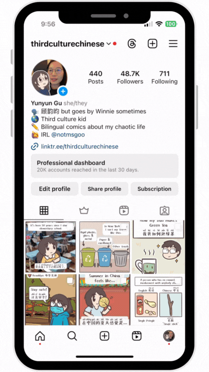 Third culture individuals are people who were raised in a culture other than their parents' or the culture of their country of nationality. Born in China and raised in China, Japan, the US, and Singapore with study abroad experiences in France, Italy, and Thailand, I have a unique yet confusing upbringing. In the ongoing webcomic series Third Culture Chinese, I explore identity crisis, culture shocks, language barriers, and many more aspects of being a third culture individual. The comic series aims to shed light on a population that has not received much exposure, and to de-stigmatize historically marginalized communities such as people of color and LGBTQ+ members.